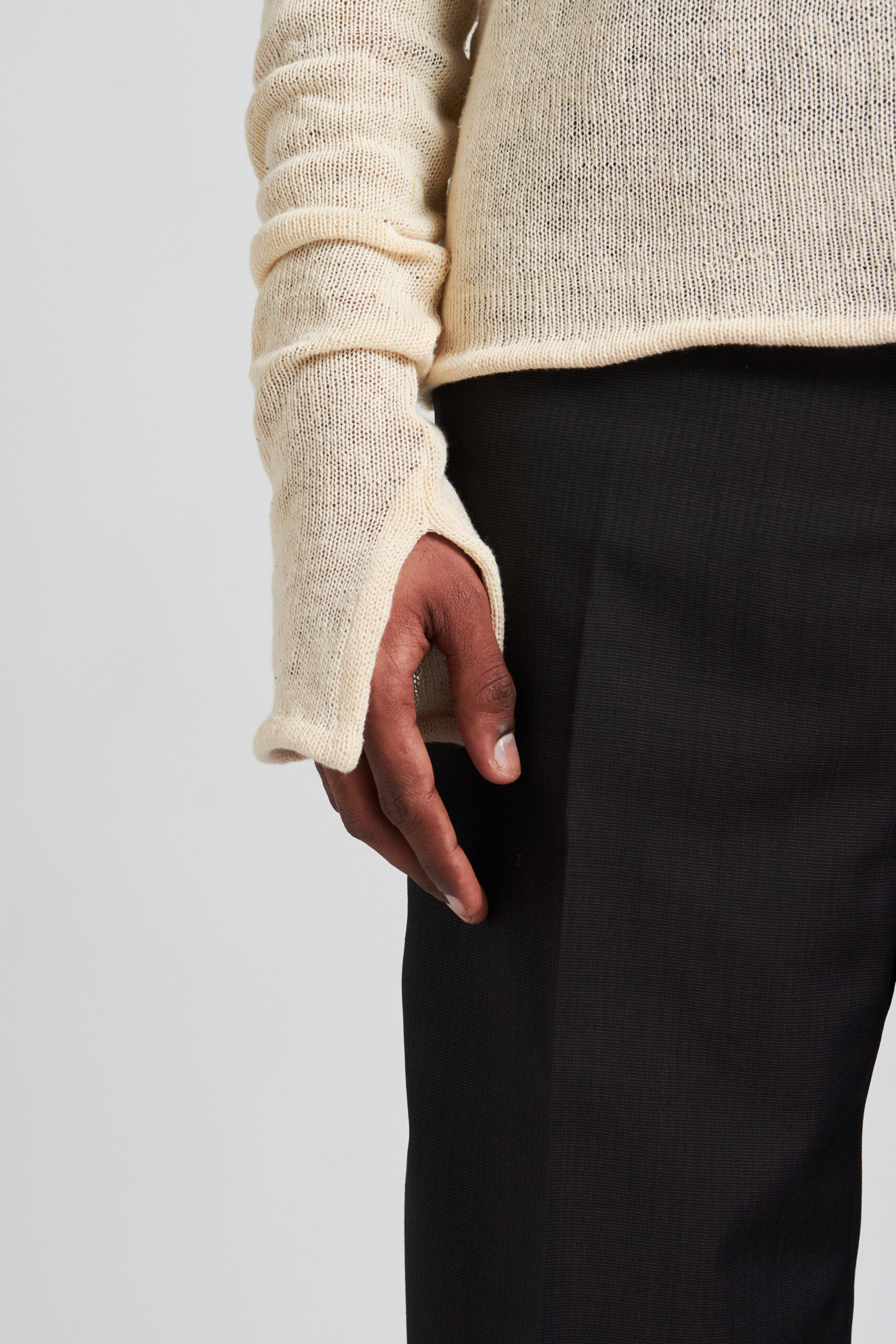 Handmade lightweight khadi cotton stockinette stich sweater with a slim fit.